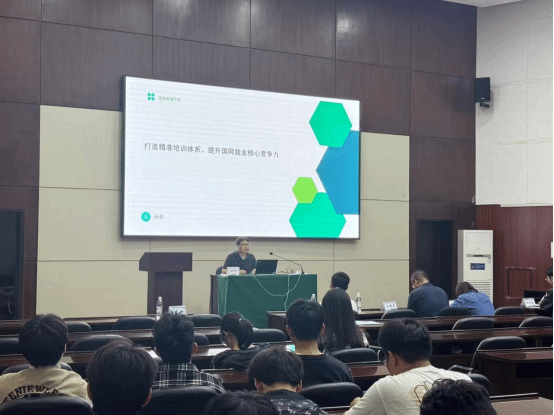 接下来,继续教育学院邀请致力国网培训考情指导多年的老师为同学们作考试政策解读。他分析了国家电网考试的考纲变化、题型特点与备考策略,并对同学们关心的招聘流程、岗位需求等热门问题进行解答,内容具有针对性与指导价值。